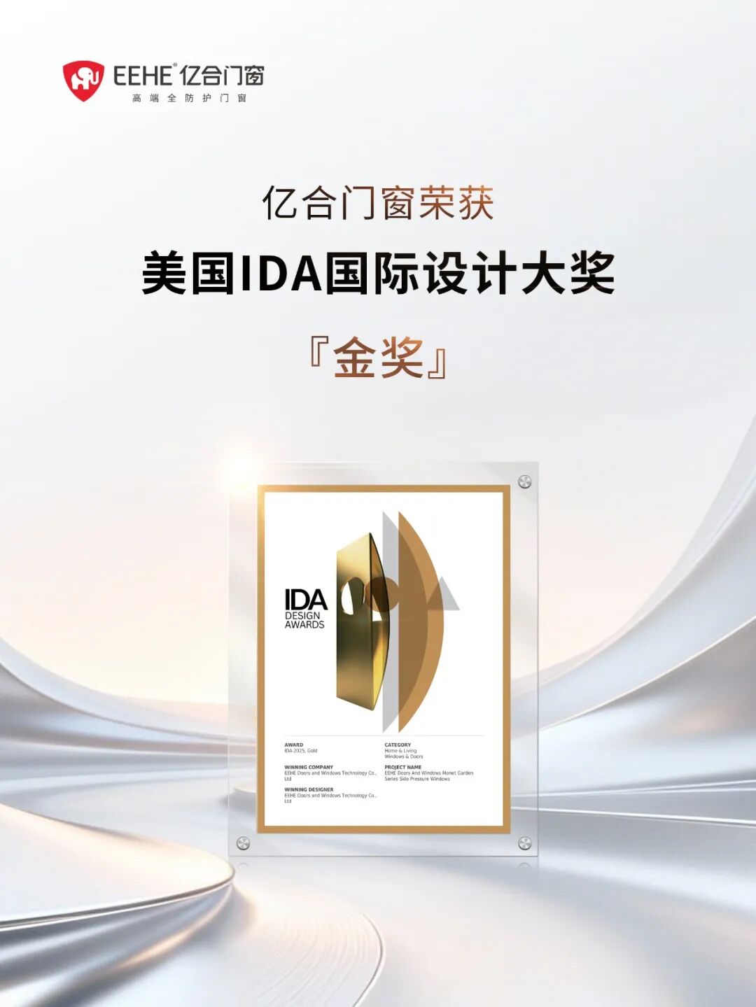 億合門窗榮獲美國IDA國際設(shè)計大獎金獎!