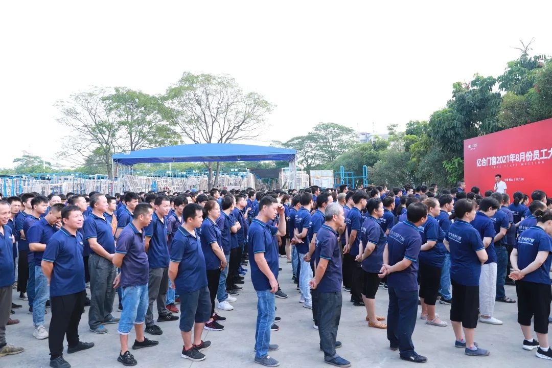 八月份的天氣,烈日當(dāng)空,酷熱難耐,但依然擋不住員工們的熱情。8月3日上午,億合門窗8月份全體員工大會(huì)在公司新擴(kuò)建的生產(chǎn)基地隆重召開,公司總經(jīng)理胡超,副總經(jīng)理郭遠(yuǎn)志、甘孝東、朱大均、劉科特等領(lǐng)導(dǎo)攜全體員工1500余人共同出席了本次大會(huì)。會(huì)議總結(jié)了七月各項(xiàng)工作成績與不足、規(guī)劃了八月份各部門重點(diǎn)工作,激勵(lì)著全體員工朝著最初的目標(biāo),奮發(fā)前行。