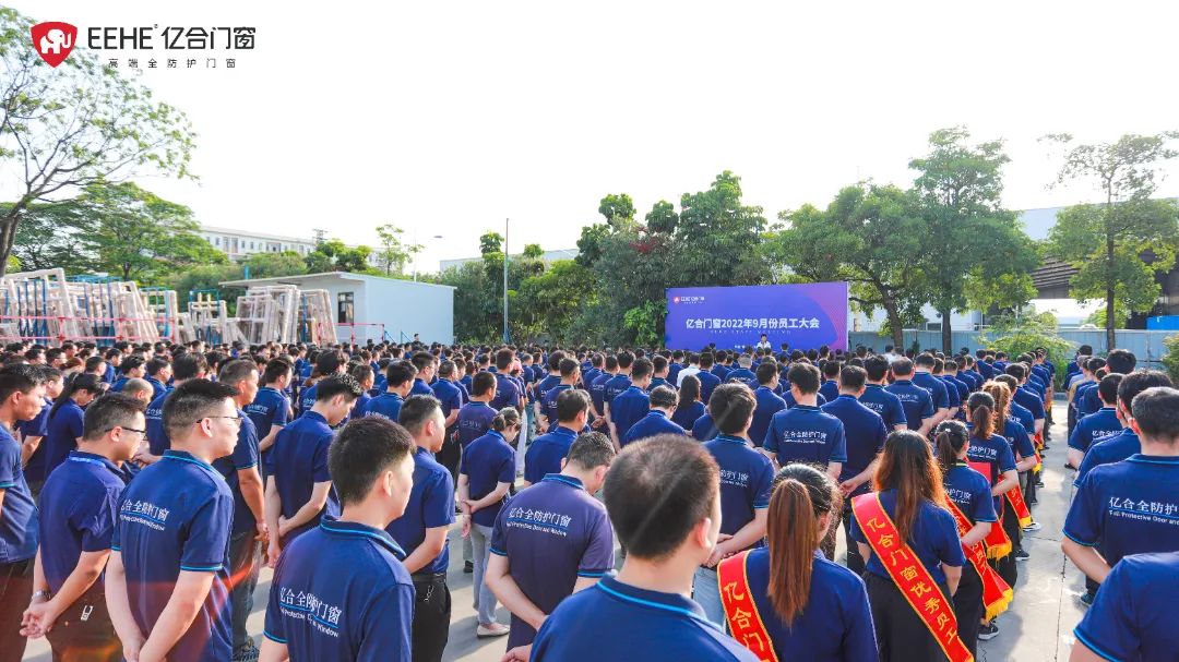 豐收的金秋季節(jié),奮斗的嶄新開(kāi)端。9月2日上午,億合門(mén)窗9月份全體員工大會(huì)在公司新擴(kuò)建的生產(chǎn)基地隆重召開(kāi),公司總經(jīng)理胡超攜全體員工1500余人共同出席了本次大會(huì)。