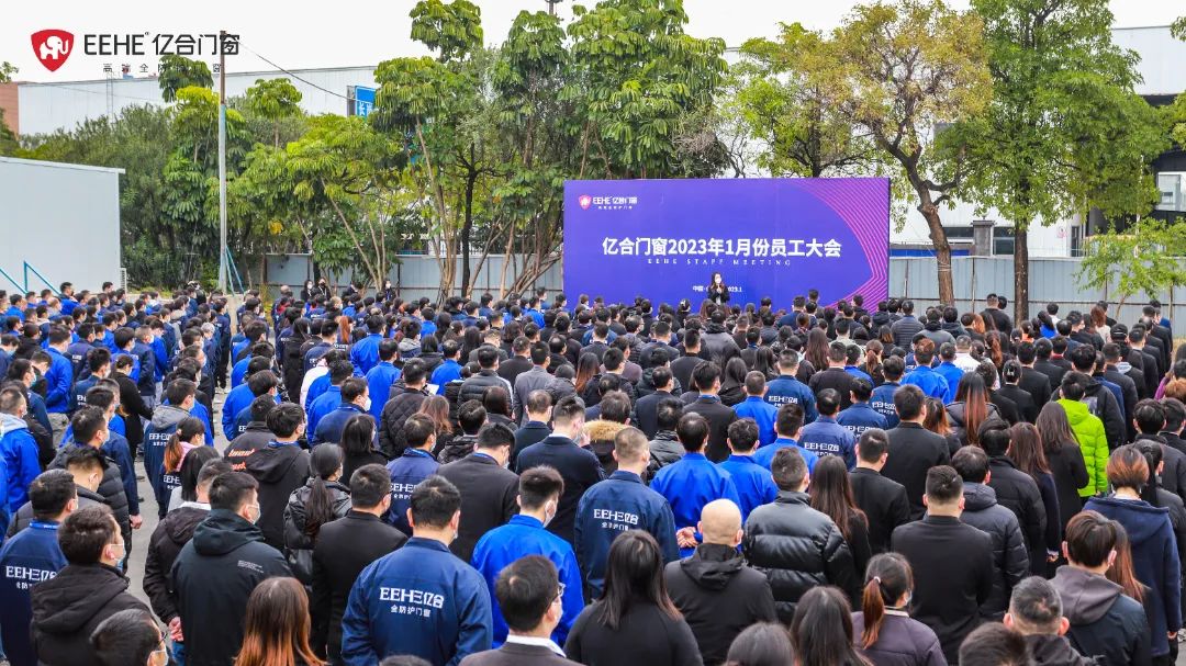 金虎辭舊歲,福兔迎新年。1月3日上午,億合門窗2023年首場全體員工大會在公司新擴建的生產(chǎn)基地隆重召開,正式掀開2023年全新篇章,億合門窗董事長曾奎,總經(jīng)理胡超攜全體員工1500余人共同出席大會。