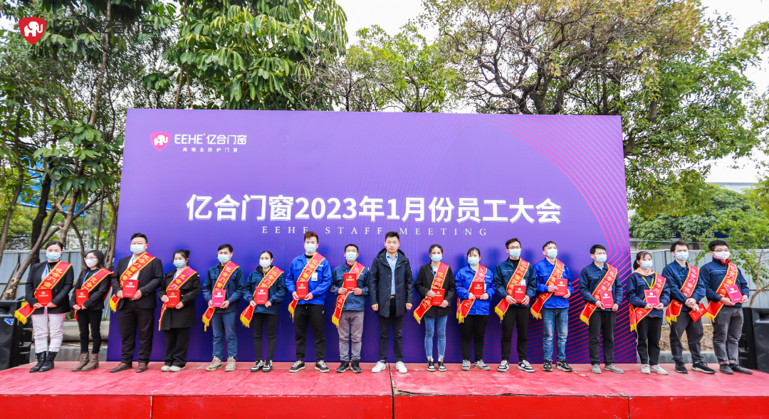 國以才立,業(yè)以才興。億合是奮斗者的搖籃,也是優(yōu)秀人才一展抱負的舞臺,崇尚先進、對標先進、爭當先進已在企業(yè)蔚然成風。為弘揚榜樣精神,展現(xiàn)優(yōu)秀員工風采,大會表彰和鼓勵在工作中表現(xiàn)突出、辛勤付出的員工。億合門窗總經(jīng)理胡超對獲獎員工表示祝賀,感謝他們對公司的奉獻及忠誠,并現(xiàn)場為他們進行頒獎。